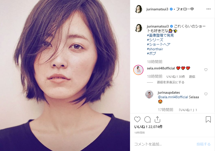 松井珠理奈 大人の魅力あふれるショートボブ姿を公開 このヘアスタイルが一番好き と大好評 ニコニコニュース